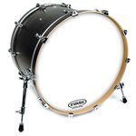 La série de peaux Evans EQ3 Resonant No Port comprend une seule couche de film de 7,5 mil avec un anneau de contrôle des harmoniques interne de 10 mil.