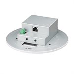 The power module is equipped with an 80 Hz low-cut UniSteep® filter, three-position input gain level selector (+30 dB, +40 dB, and +50 dB), and a red/green LED status indicator (all controlled remotely via third-party software*). It mounts in a standard metal U.S. 2-gang electrical box, and its RJ45 output jack allows for easy connection to the network via CAT5e (or better) cable.