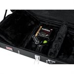 The GWE-ELEC-WIDE Hard-Shell Wood Case for PRS and Wide Body Style Guitars is lightweight, ultra-slim, and designed to protect against the minor bumps and bruises of daily use. Ultra-durable plywood coated in black Tolex PVC forms a moisture-resistant, impact-resistant outer barrier while plush fabric lining keeps your wide body guitar snug. The large interior storage compartment fits everything from straps and tuners to picks and capos. Chrome plated lockable latches form a secure enclosure and the ergonomic carrying handle perfectly balances the case’s weight and gives you a comfy grip on your gear. Keep your wide body electric guitar safe and sound with the Gator GWE-ELEC-WIDE hard-shell wood case.