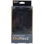Low-lit venues leave you squinting helplessly at your music sheet or playlist? The XtraFlex 2 LED Music Light wont leave you in the dark this breakthrough model harnesses the astonishing brilliance of two LEDs, making it the brightest of our single gooseneck designs. Bright, yes, but unlike incandescent bulbs LEDs actually increase the contrast of the words and notes on your sheet, making for a far more comfortable read. Set the intensity by pressing the button once or twice. Clip and twist to set the perfect angle, the gooseneck obeys your every whim. The clip opens extra wide to keep your hands free when it matters most. If the battery runs low, plug it in and play on.