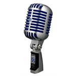 Iconic chrome-plated design with vibrant blue color additions. Tailored frequency response for natural vocals and speech. High gain-before-feedback and excellent off-axis rejection.
