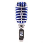 The Super 55 Deluxe Vocal Microphone features a signature satin chrome-plated die-cast casing, Supercardioid polar pattern, vibrant blue foam, and tailored frequency response for natural vocals and speech. Integrated, swivel stand mount is included.