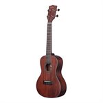 Ce ukulélé est également équipé d'une touche et d'un chevalet en palissandre, de cordes D'Addario Titanium, et une finition satinée lisse à pores fermés. Attention, cet instrument est destiné aux joueurs qui comprennent les caractéristiques sonores que ce uke a à offrir et qui sont prêts à grandir à ses côtés à mesure que le bois massif s'améliore encore avec le temps. Pour citer Acoustic Guitar Forum, "L'acajou commence bien et s'améliore en vieillissant." L'acajou est un bois classique au son traditionnel et chaleureux que de nombreux amateurs de ukulélé préfèrent.