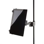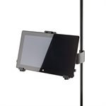 Support de tablette universel pour différents modèles. Le support de tablette universel peut être ajusté de manière variable pour s'adapter à différentes tailles de tablettes sans avoir besoin d'outils et maintient les appareils de manière sûre et efficace dans de nombreuses situations différentes. Que ce soit sur scène, dans les salles de répétition ou à la maison, grâce à l'élément de serrage robuste doté de la vis de serrage ergonomique, le support peut être fixé rapidement et facilement sur n'importe quel tube jusqu'à 30 mm. Les bras de support réglables individuellement peuvent accueillir des tablettes d'une hauteur de 222 à 334 mm et d'une largeur de 128 à 232 mm (par exemple iPad, iPad Air, iPad Pro, Amazon Fire HDX 8.9, Samsung Galaxy Tab de 9.7, Google Nexus 9, Asus Transformer ou Microsoft Surface ainsi que Surface Pro). La profondeur des comprimés peut varier entre 6 et 11 mm. Lors de la première utilisation du support de tablette, les réglages des bras de support s'effectuent en ajustant les vis de serrage à la taille et à la profondeur de la tablette. Pour d'autres utilisations, la tablette peut être fixée et détachée rapidement et simplement grâce à un verrou à pression. Un écrou à oreilles pratique permet d'ajuster l'angle, de sorte que chaque utilisateur puisse facilement trouver sa position individuelle idéale. La tablette peut basculer entre les positions portrait et paysage. La tablette est maintenue en place, il n'y a aucun risque que la tablette change de position toute seule.